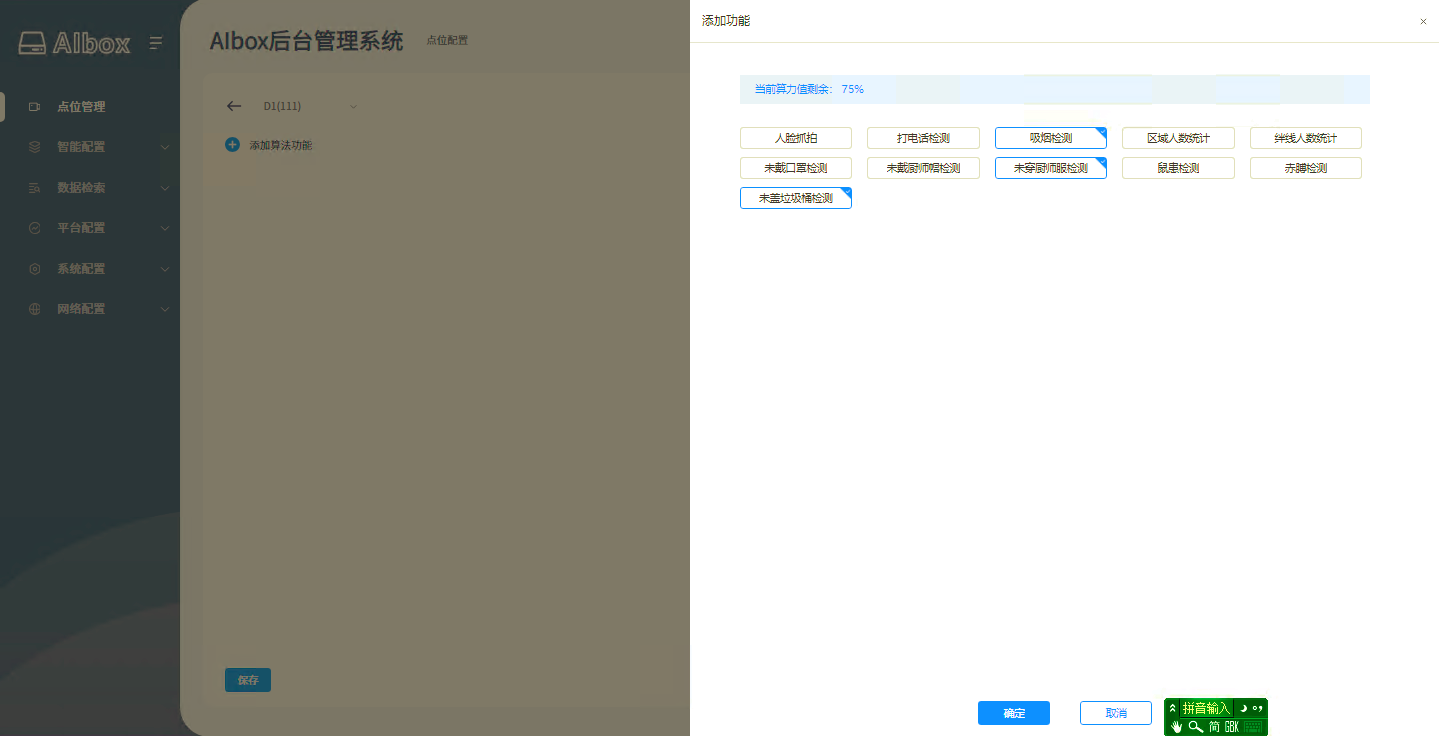 當攝像頭接入成功,我們可以在“實時預警”欄看到視頻畫面,然后分配ai算法成功,開始智能分析功能。