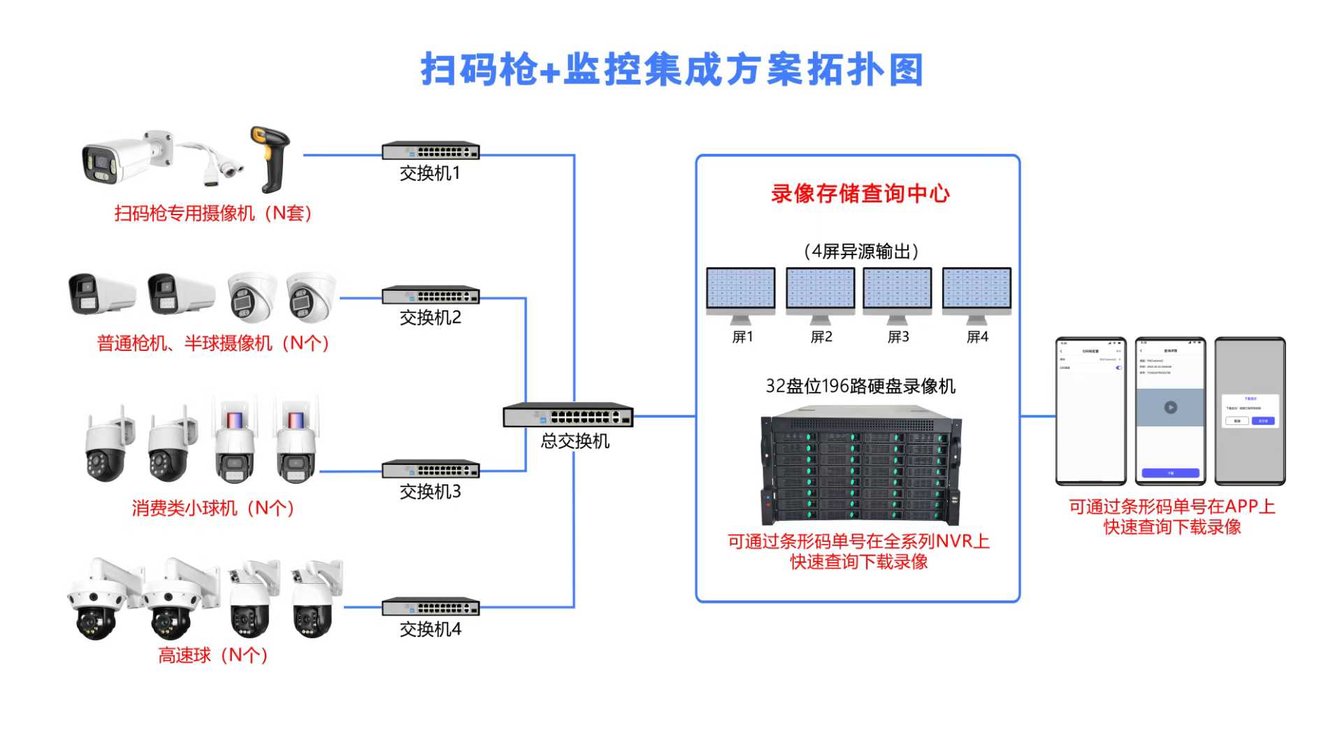 條形碼(掃碼槍+監(jiān)控攝像頭)快遞打包監(jiān)控取證系統(tǒng)集成方案