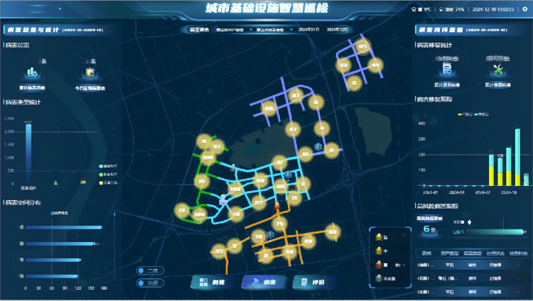 針對前端采集的病害隱患,隧道股份城市運營還建設了“城市基礎設施智慧巡檢平臺”,為后端病害處置提供了高效方案。通過AI算法推動養護策略從“被動維修”轉向“主動防護”,再大幅降低了養護人員對病害線索篩選判斷的工作量的同時,可實現4小時內“病害發現、預警上報、派單處置”的智能化全流程管理,真正實現為道路“治未病”。