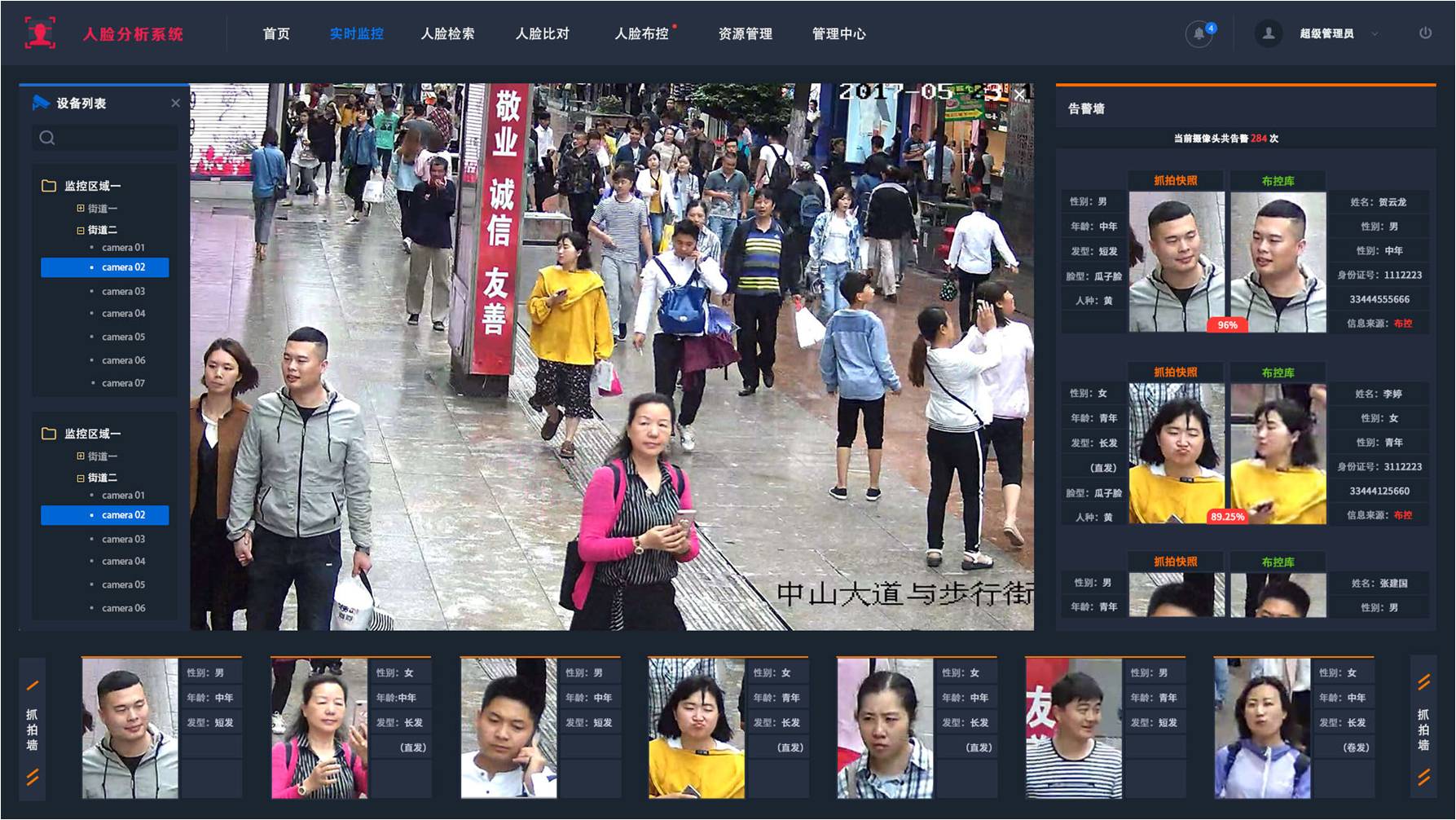 人臉識別系統采用先進的人臉識別技術,根據人的面部信息來進行身份識別。它無需識別對象主動配合,當其通過視頻監控的地點時系統將自動進行比對識別,一旦發現陌生人或可疑人員,系統自動報警,有效的解決了傳統視頻監控系統耗費大量人力和時間資源問題,為安防系統事前預警、事后調查分析提供了有效的手段。系統功能如下: