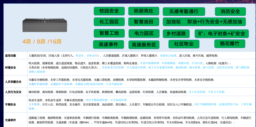 應(yīng)用前景?:AI盒子在監(jiān)控領(lǐng)域的應(yīng)用前景廣闊。隨著智慧城市、智慧交通、智慧工業(yè)等概念的普及和實(shí)施,AI盒子將成為這些領(lǐng)域中不可或缺的智能設(shè)備。同時(shí),隨著5G技術(shù)的推廣和應(yīng)用,AI盒子的實(shí)時(shí)性和高效性將得到進(jìn)一步提升。